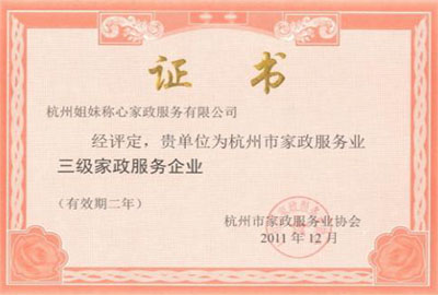 2011年榮獲三級家政服務(wù)企業(yè)